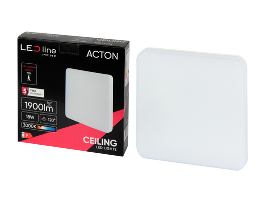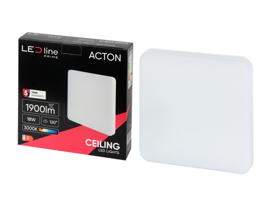 LED-line PRIME ACTON Deckenleuchte 18W eckig 1900lm IP54 120° Warmweiß 3000K