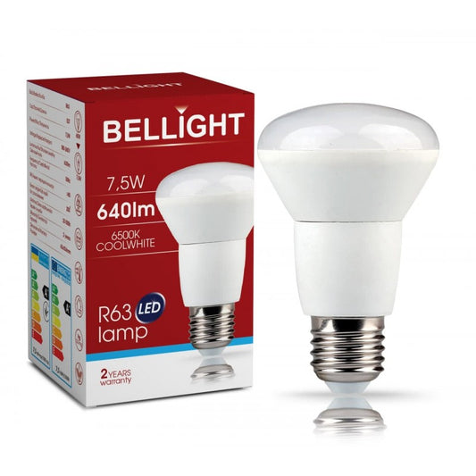 Bellight LED E27 R63 7,5W = 60W 230V 640lm Birnenform 200° Kaltweiß 6500K