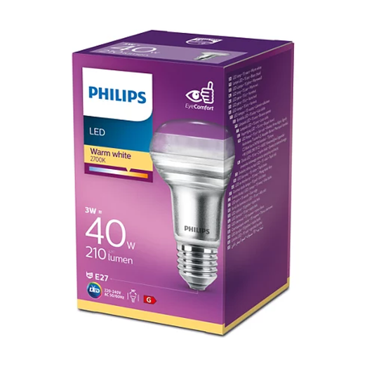 Philips LED E27 R63 3W = 40W Reflektor 36° Pilzform 210lm Warmweiß 2700K