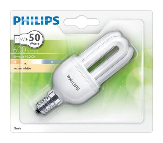 Philips E14 Energiesparlampe Genie 11W = 50W 600lm Spirale Warmweiß 2700K