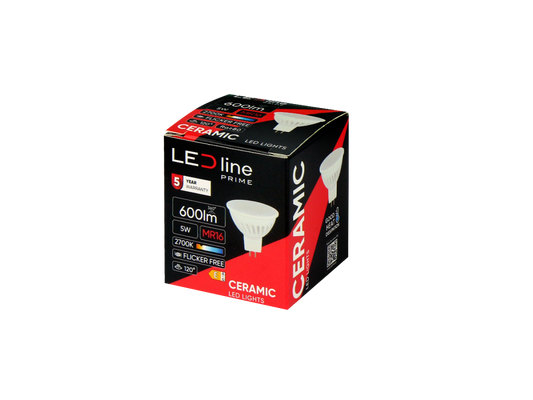 LED-line PRIME LED GU5,3 MR16 5W Reflektor 600lm 120° Keramik 10-18V AC/DC Warmweiß 2700K