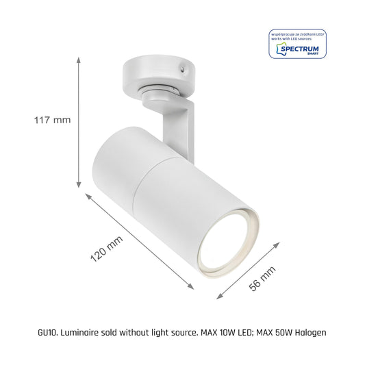 Spectrum LED MADARA MINI II GU10 white ceiling light swiveling and rotating IP20 max. 35W round