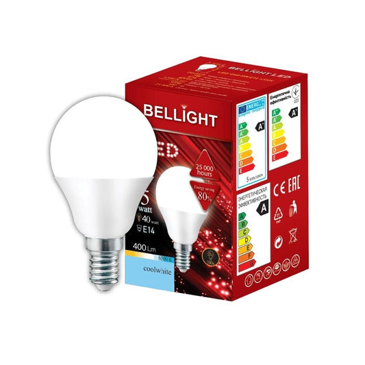 Bellight LED E14 G45 teardrop shape 5W = 40W bulb 400lm 230V cold white 6500K
