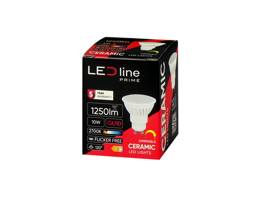 LED-line Premium LED GU10 10W = 100W reflector 1250lm 120° ceramic 170-250V warm white 2700K DIMMABLE